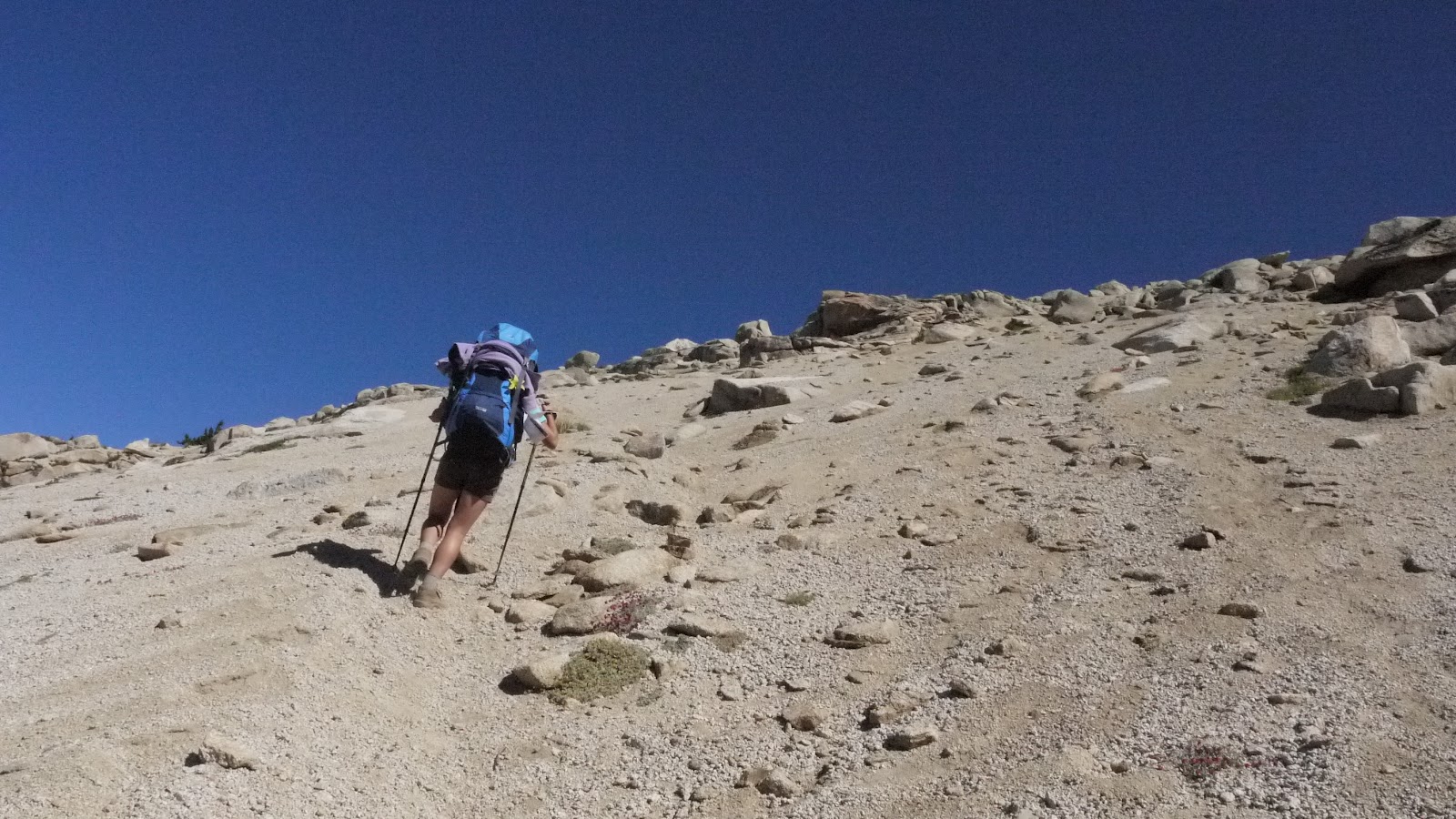 Climbing to the top of Sawtooth Pass was brutal. Every step we took going up the pass, the lose sand brought us back two steps.