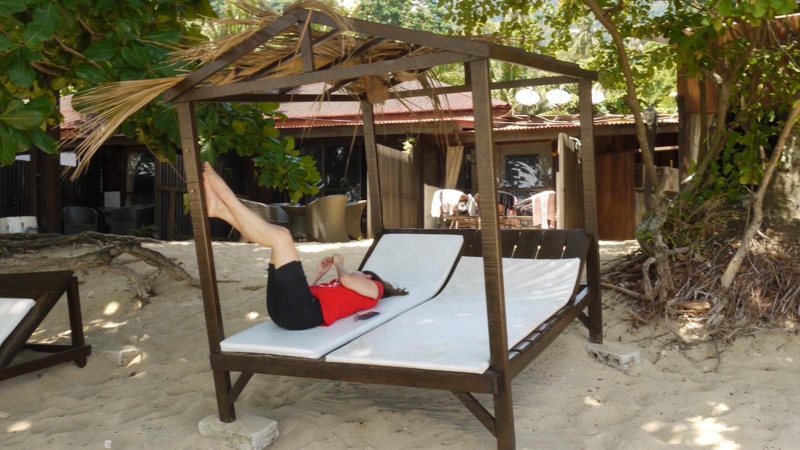 Azrina relaxing in front of our resort room.