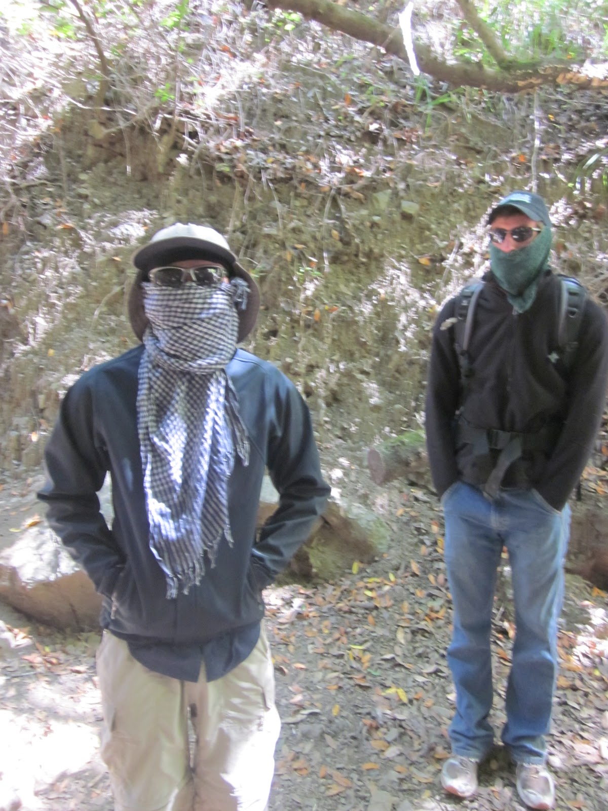 Louis was attacked by a nest of yellow jackets on our way into Estrella. This is how we prepared for them on our way out.