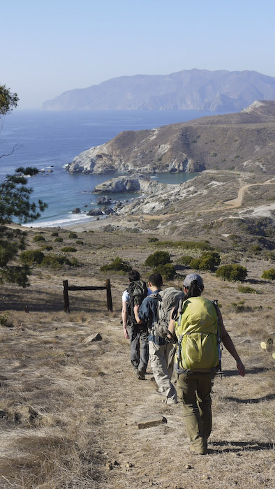 The hike to the Little Harbor campground was pretty fast, downhill for the majority of the 5 miles. I’m not sure what is it about the Catalina trails that gives everyone terrible blisters. By the time we got to our campground, I was limping, wishing I had brought my sandles for the weekend. Seeing the buffalo on the trail just made me more hungry for that burger…