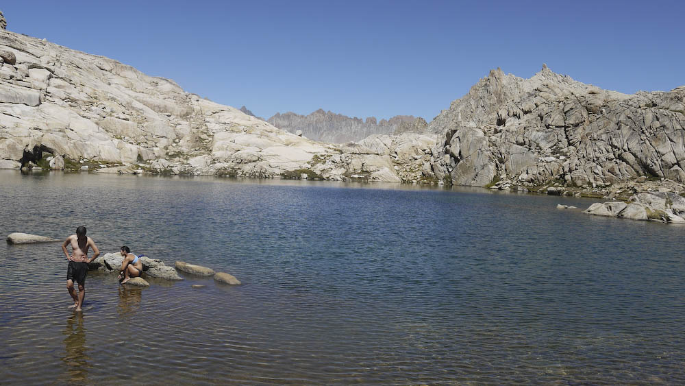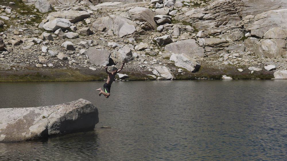 Instead of camping at the large Columbine lake, Louis ventured off to find our secret cove we stumbled upon three years ago. We set camp in one of the coves and took a dip in the lake. Water was freezing, but it was well worth it!