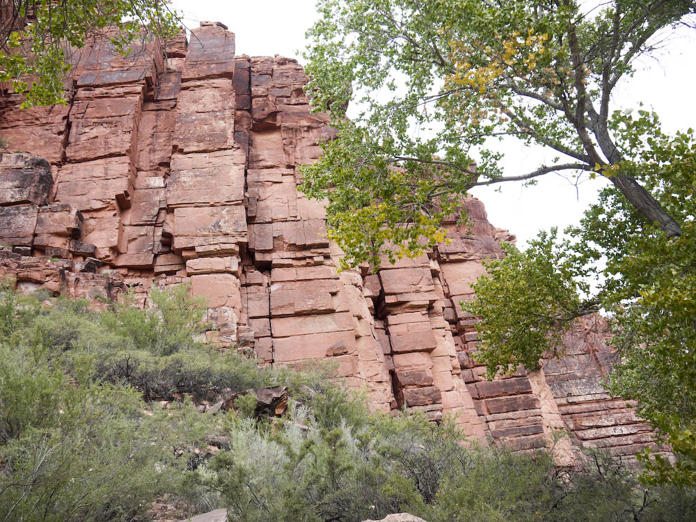 The amazing rock formations a couple miles outside the Supai village. Does anyone know why the horizontal cuts between the rocks are so symmetrical?