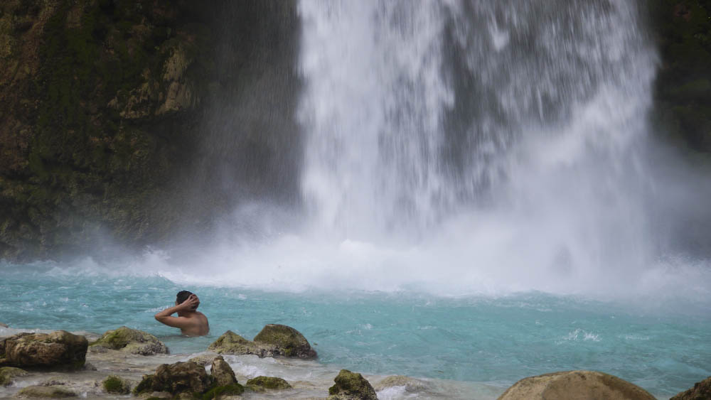 Louis and I back tracked to Havasu falls after Mooney falls. The weather held up surprisingly well and Louis decided to go for a swim at Havasu Falls.
