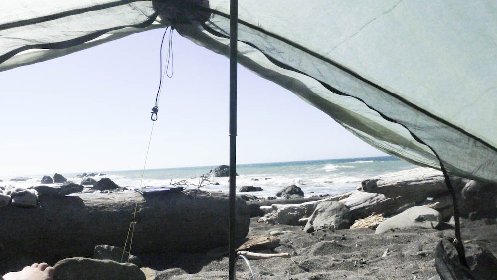 We kept hiking and picked an established camp site on the beach at Spanish Flats, just shy of Spanish Creek, probably the worse decision of the trip. Wind gusts were strong and we didn’t have any natural barriers. The existing wind breaks were not working well as the winds were blowing from all directions. The soft sand made pitching the tent extremely difficult and we ended up using some flat rocks to support or tent poles. The night was dry and windy, but we settled in for the night and fell asleep.