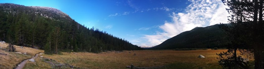pano_20160830_082329 Published October 5, 2016 at 966 × 255 in JMT Devils Post Pile to Yosemite – Day 3 – Lyell Canyon to Sunrise Camp