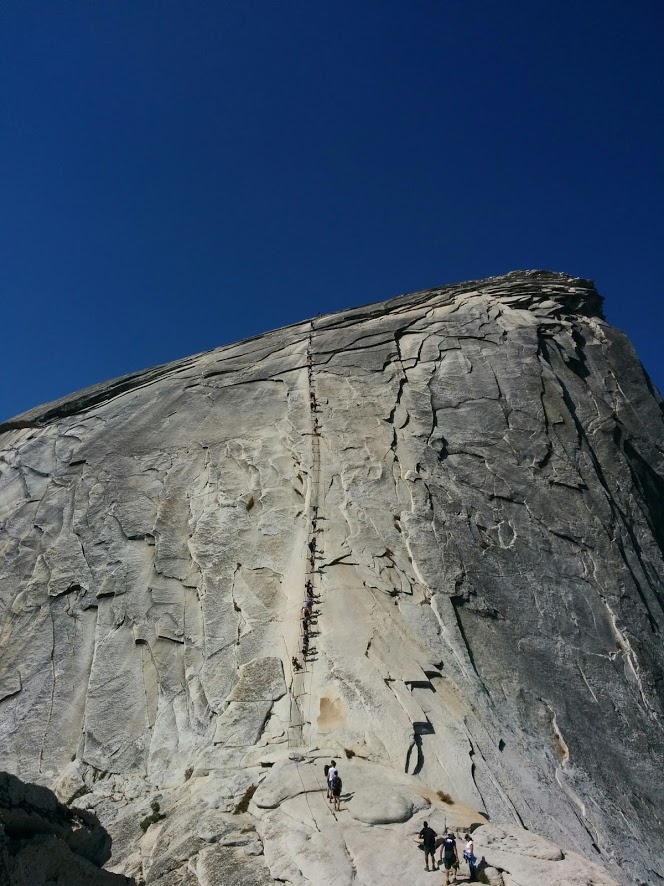 img_20160831_112638 Published October 5, 2016 at 664 × 886 in JMT Devils Post Pile to Yosemite – Day 4- Sunrise HSC to Half Dome to Happy Isle Crowded cable lines