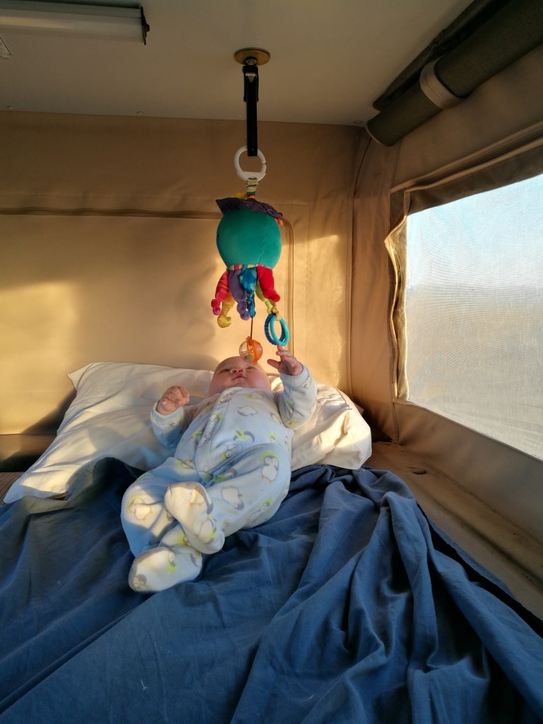 sdr Published April 14, 2017 at 2976 × 3968 in Day 2- Mojave National Preserve- Kelso Depot and Lava Tubes Baby S playing with his toy inside the van