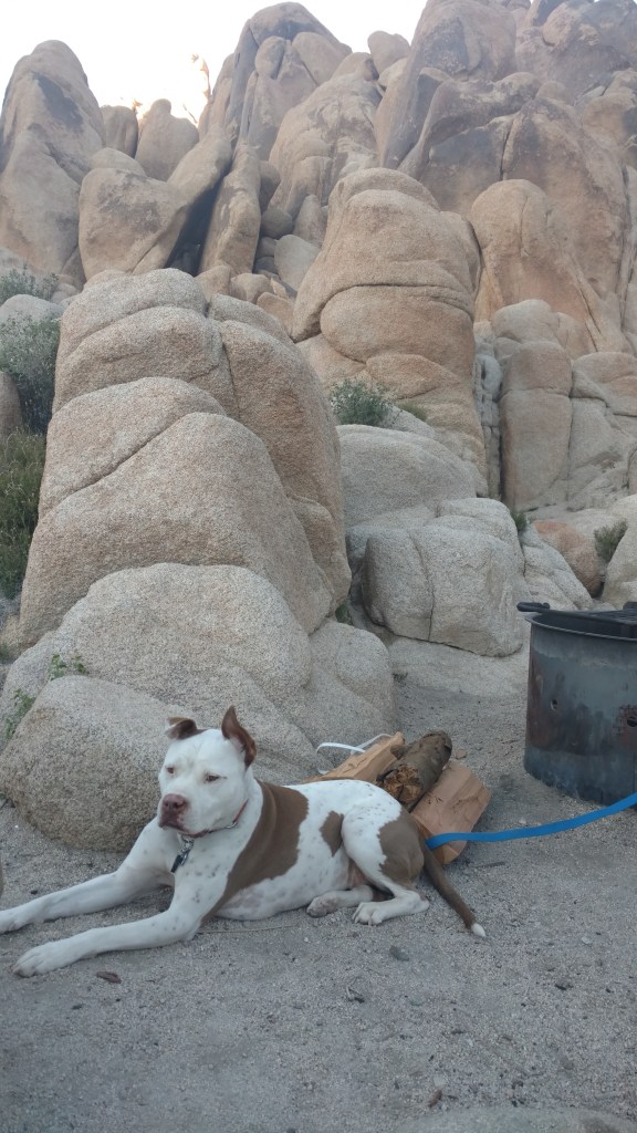 IMG_20170307_165120836 Published April 17, 2017 at 3006 × 5344 in Day 4- Joshua Tree National Park – Indian Rock Campground and Boy Scout Trail Dakota relaxing