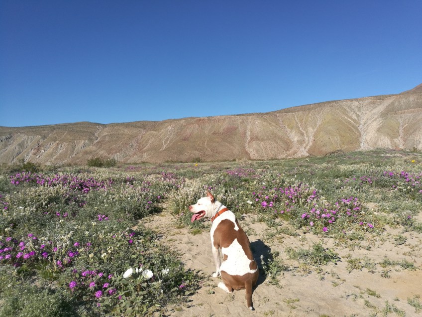 dav Published April 17, 2017 at 3968 × 2976 in Day 5- Anza-Borrego Desert State Park- Palm Canyon Campground Dakota posing in the middle of the Desert Sand Verbena