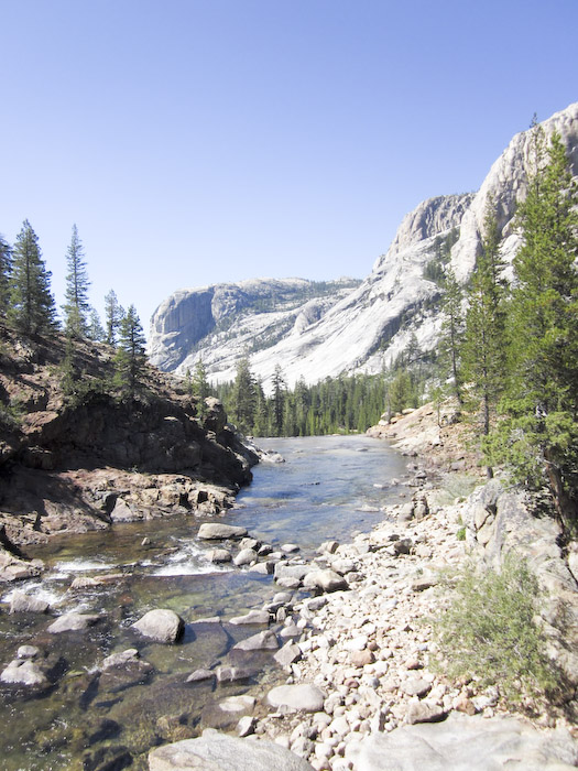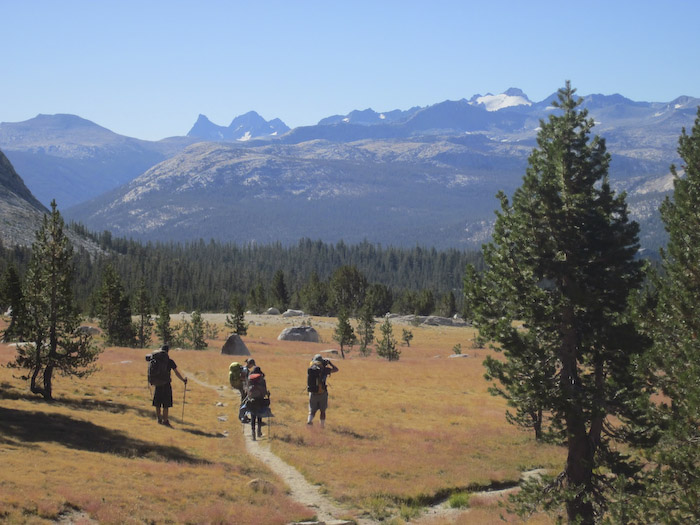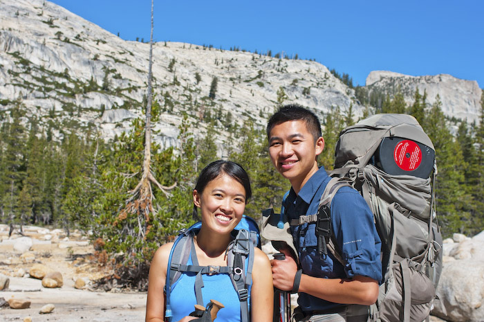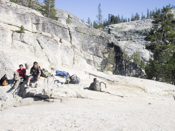 Louis and I spent labor day weekend backpacking at Young Lakes at Yosemite National Park with a few friends. We left Friday morning and drove up to Yosemite National Park’s Eastern entrance off the Tioga Road into the Tuolumne Meadows. It took approximately 6 hours to drive up to the national park from Southern California. Lodging is $5 a night for backpackers at Tuolumne Meadows backpackers campsite. We planned to meet the rest of our camping party at the campsite on the first day but never found the campground. Instead, we drove all 20 miles east on Tioga Road to Porcupine campground and setup camp there for the night. We did manage to find our friends some time later at the backpacker’s campsite and convinced them to move over to the Porcupine campground since it was close to our starting point the next day:) Porcupine was fine for a car camping campground. We were stuck next to some very loud neighbors and did not sleep very well that night, which reminded us why we enjoy backpacking so much more.